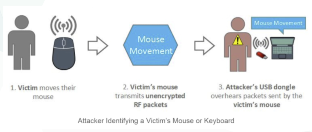 무선 마우스에서 컴퓨터로 전송을 할때 그 신호를 납치한후, 변조, 보냄