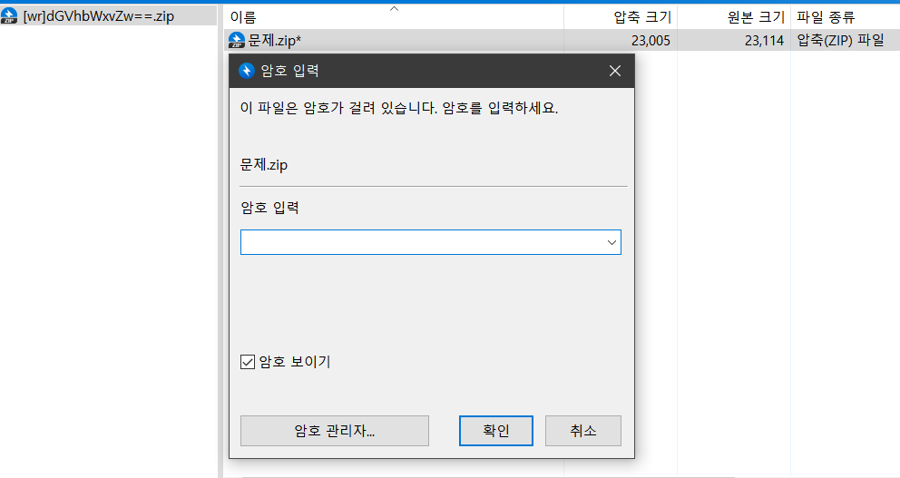 해당 파일을 풀려고 하면 암호를 입력하라고 한다.