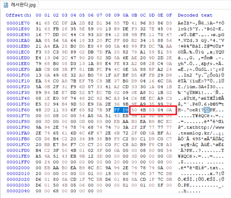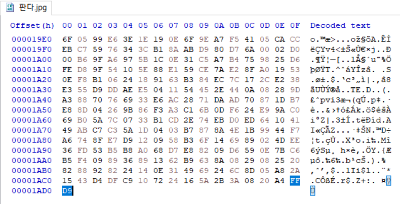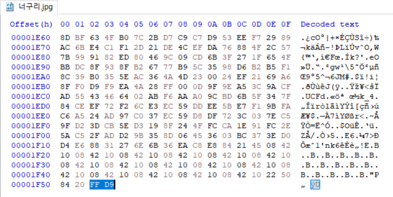 저 사진 3개를 차례대로 HxD로 뜯어보았다.