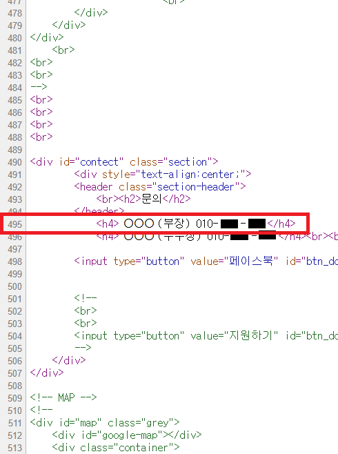 해당 사이트의 495번째줄의 사람의 전화번호가 Flag였다.