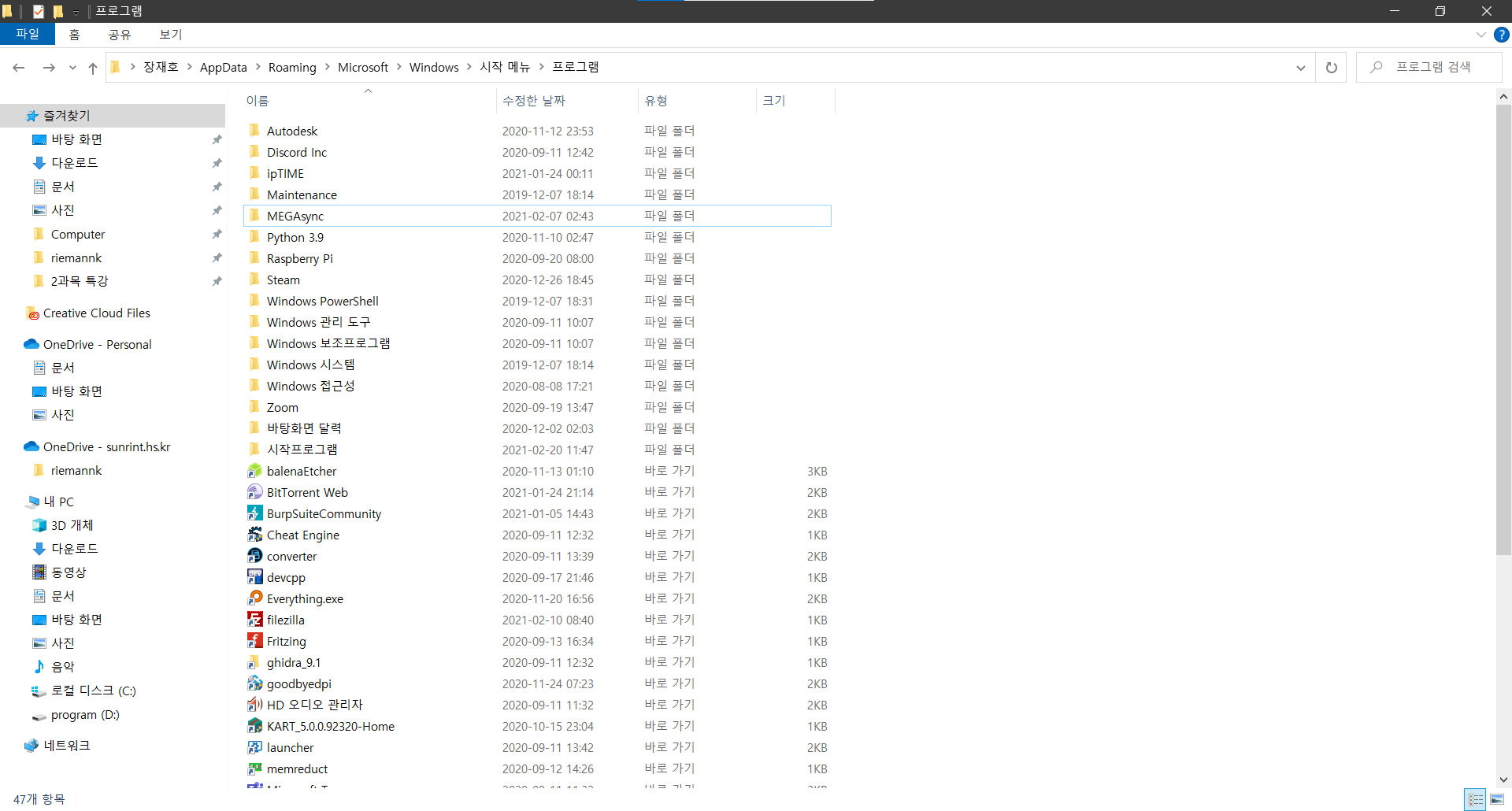 그리고 오늘 ordinius.tistory.com/534 이 블로그에서 시작프로그램 삭제하는방법을 찾아보다 '../프로그램'을 찾게 되었다.